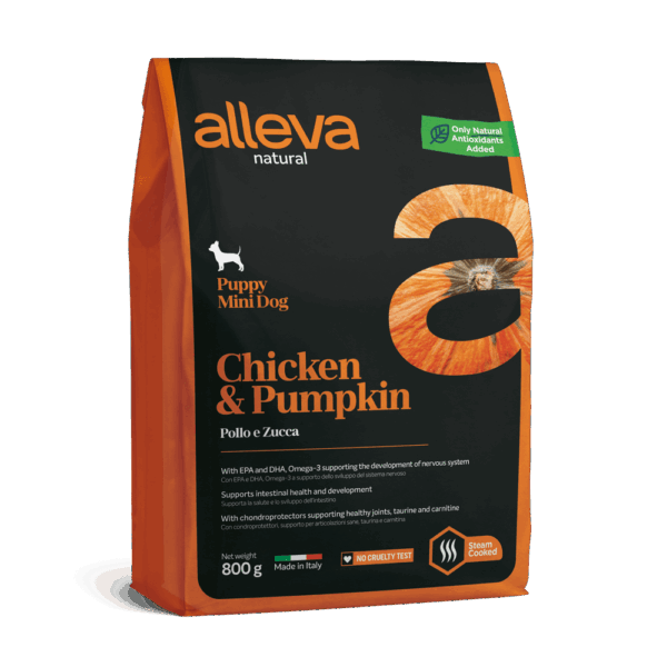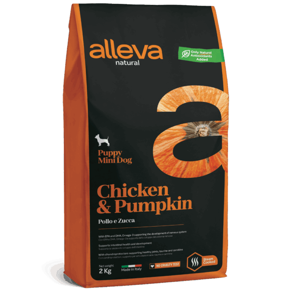 Низкозерновой сухой корм Alleva Natural Puppy Chicken And Pumpkin Mini для щенков мелких пород, беременных и кормящих собак